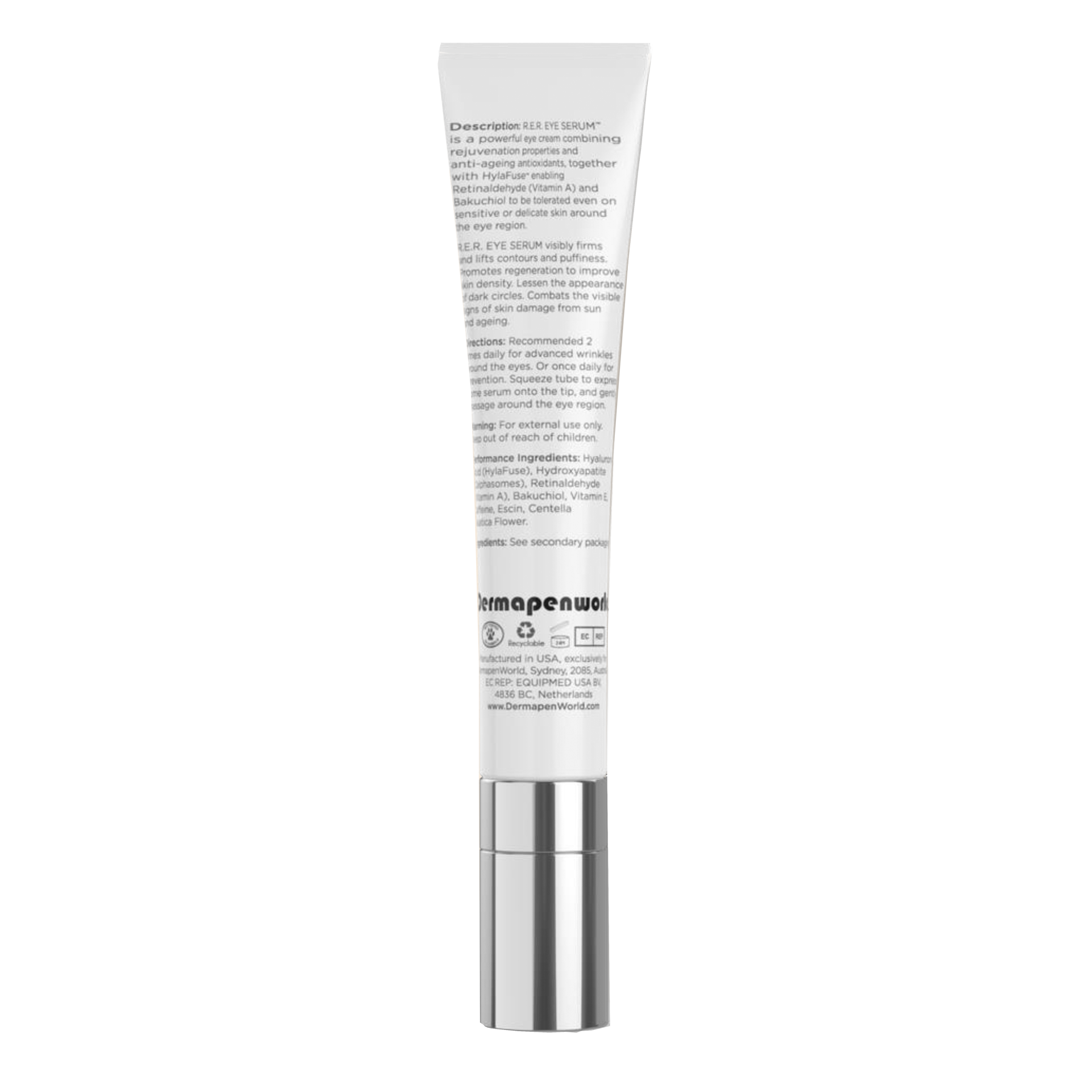 R.E.R. EYE SERUM fördert die Regeneration zur Verbesserung der Hautdichte, mildert das Erscheinungsbild von Augenringen und bekämpft die sichtbaren Zeichen von Hautschäden durch Sonne und Alterung.