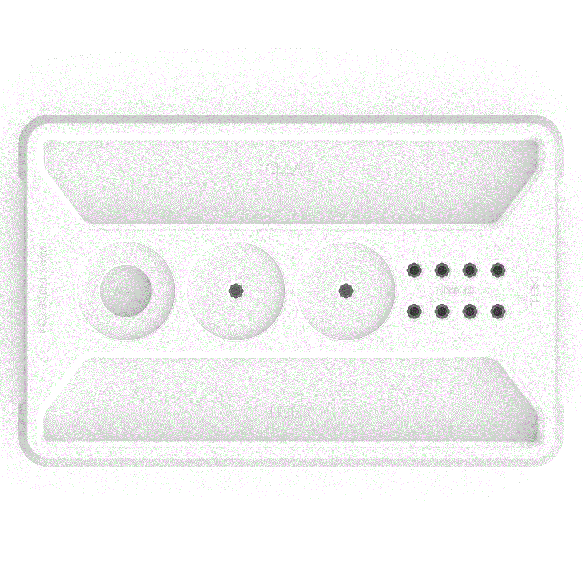 Das TSK Treatment Tray ist so konzipiert, dass es mit allen TSK-Nadeln, TSK-Kanülen und allen gängigen BoNT-Fläschchen und Dermal Filler-Spritzen kompatibel ist.