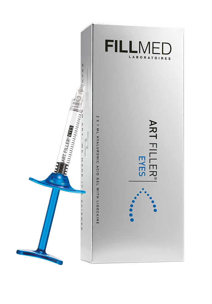 ART FILLER® EYES enthält 20 mg/ml HA in 2×1 ml Fertigspritzen mit 0,3 % Lidocain. Das Produkt ist als Medizinprodukt zugelassen. Sicherheitshinweise sind der jeweiligen Gebrauchsanweisung zu entnehmen.